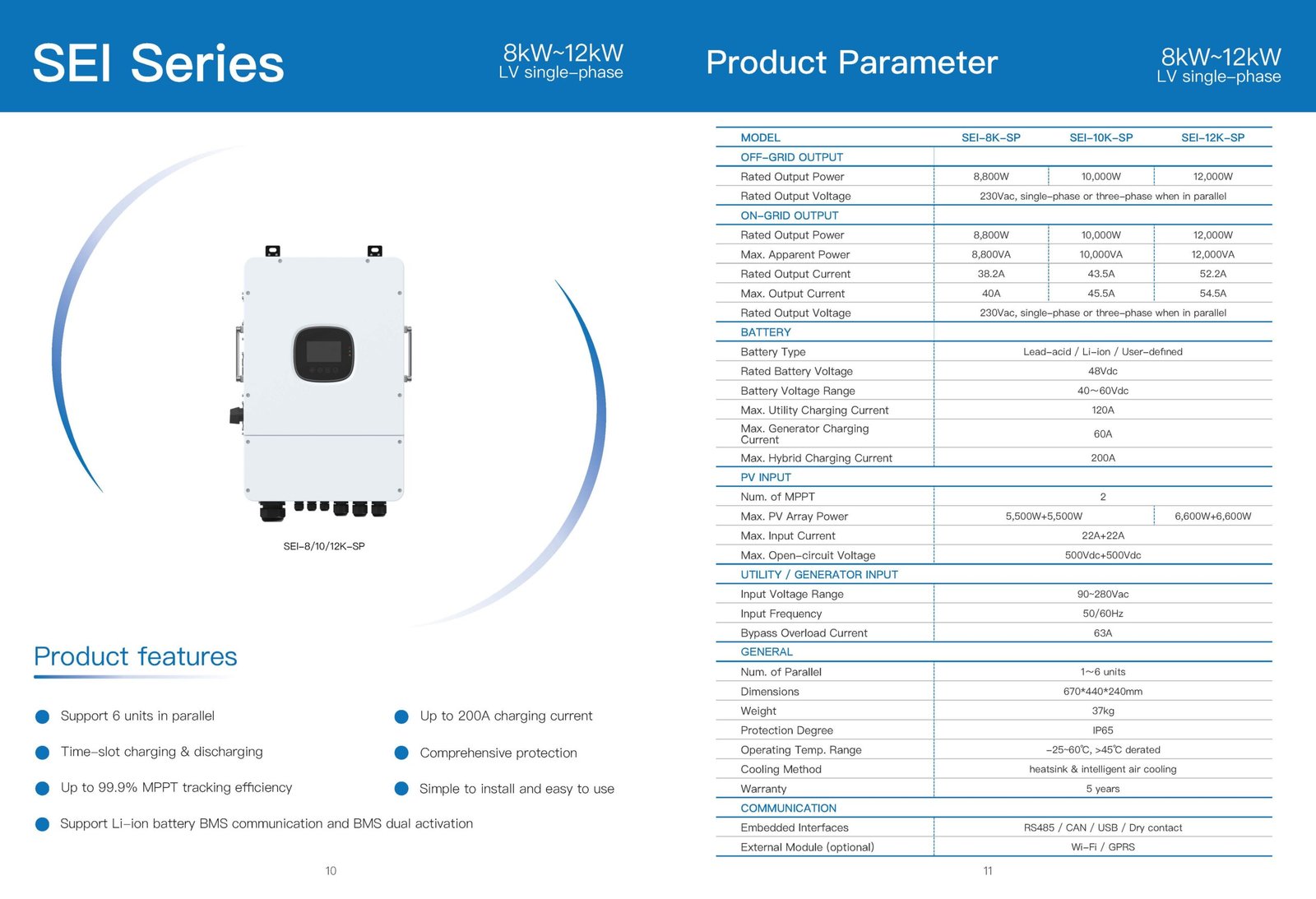230Vac, single-phase or three-phase when in parallel