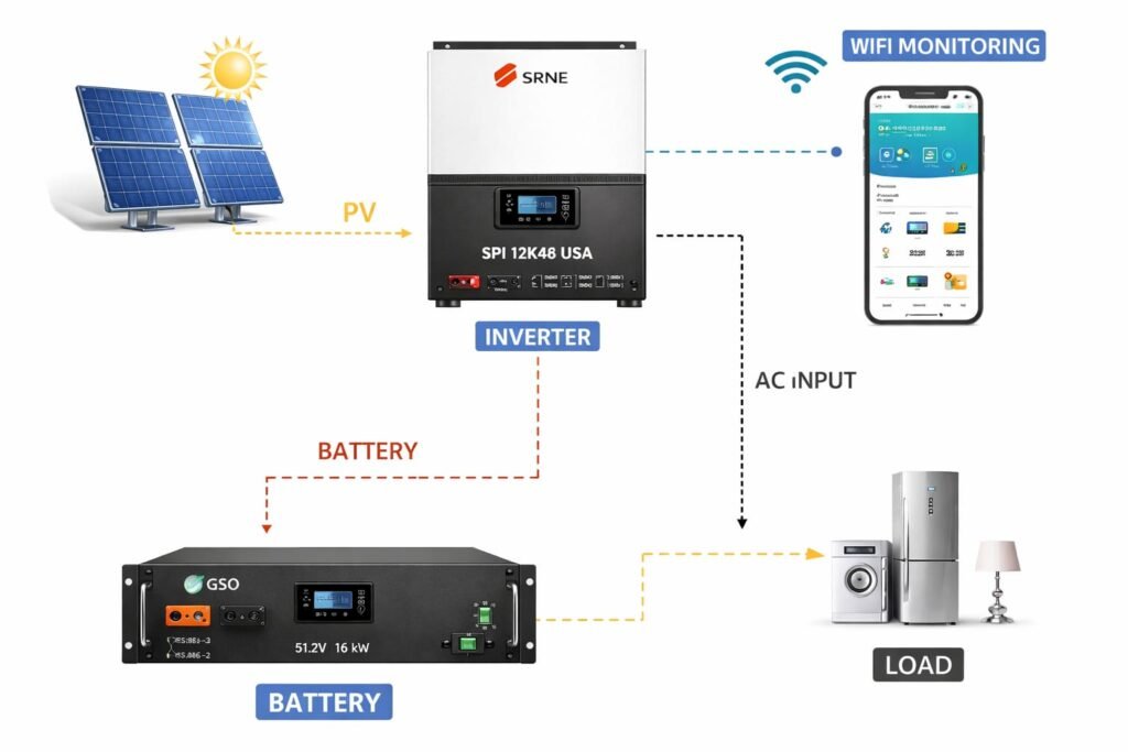- Flexible setup (grid-tied, backup, or fully independent)
